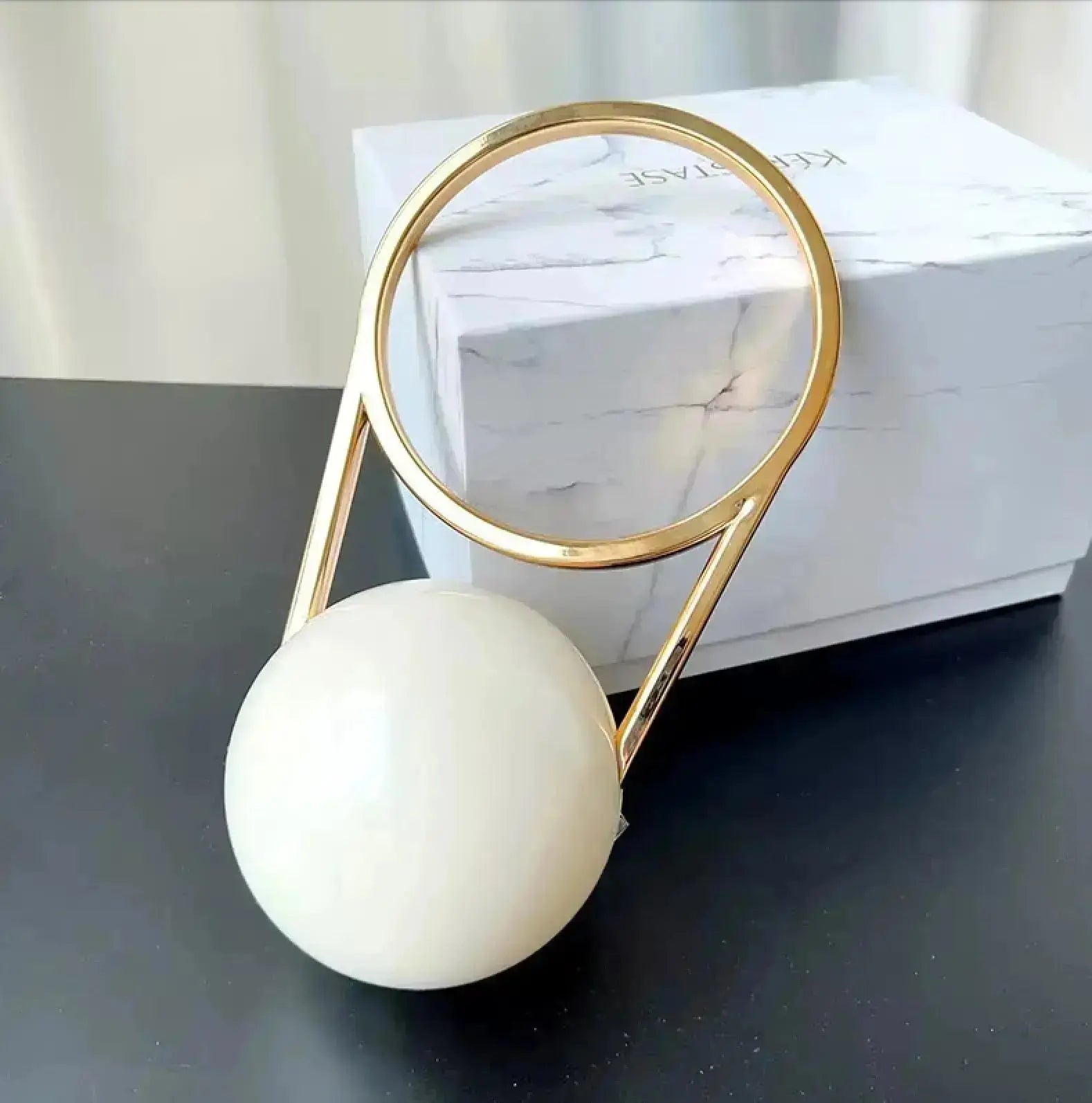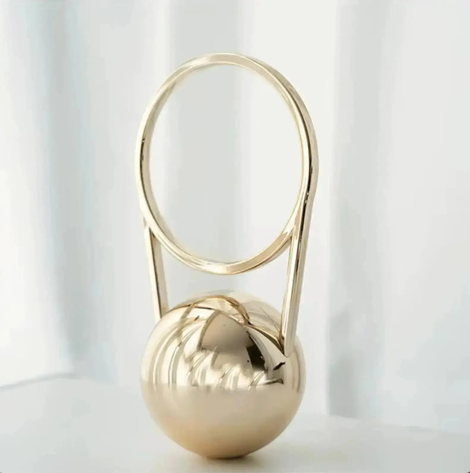 A modern masterpiece that blurs the line between fashion and sculpture. The Eclipsera Orb Clutch transforms any outfit into a show-stopping statement with its sleek, architectural silhouette. Featuring a radiant orb base balanced beneath a circular handle, this clutch radiates futuristic elegance and luxury minimalism. Designed for the woman who loves to shine — whether at galas, red carpets, or exclusive soirées.