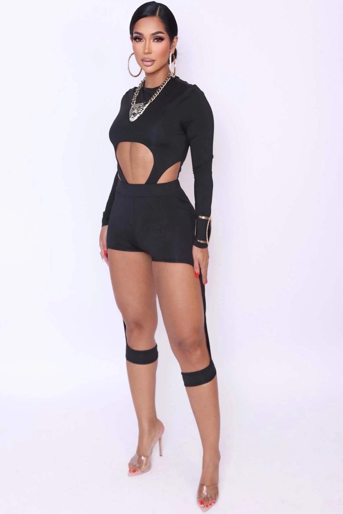 ✔️ Striking chest and waist cutouts for a bold silhouette