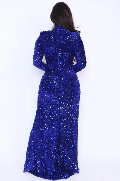 Be bold and stand out in our Evolution dress! Shimmer and shine in this elegant and chic, long, blue sequined dress. The mesh design adds a touch of glamour, perfect for any cocktail party. Make a statement and dazzle the crowd in our Evolution dress! Model is wearing a size small.