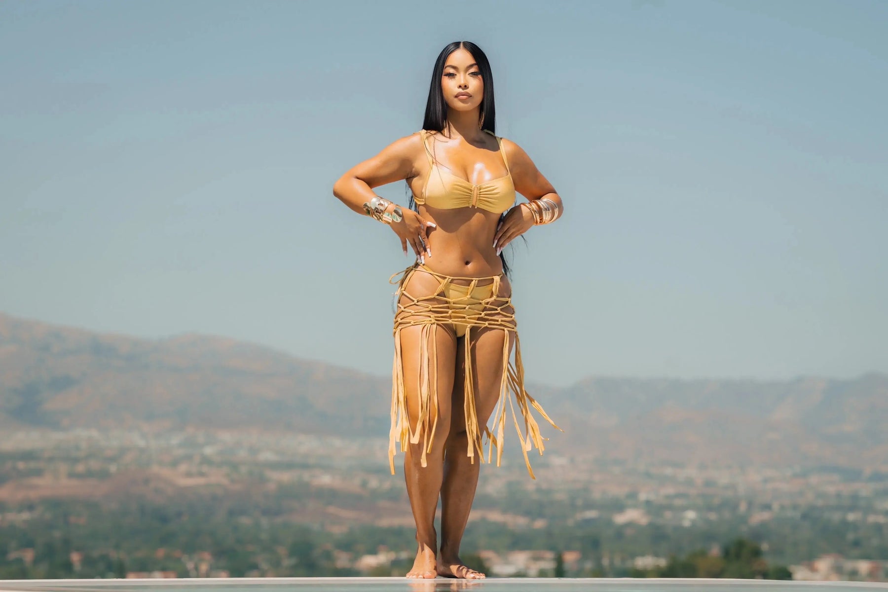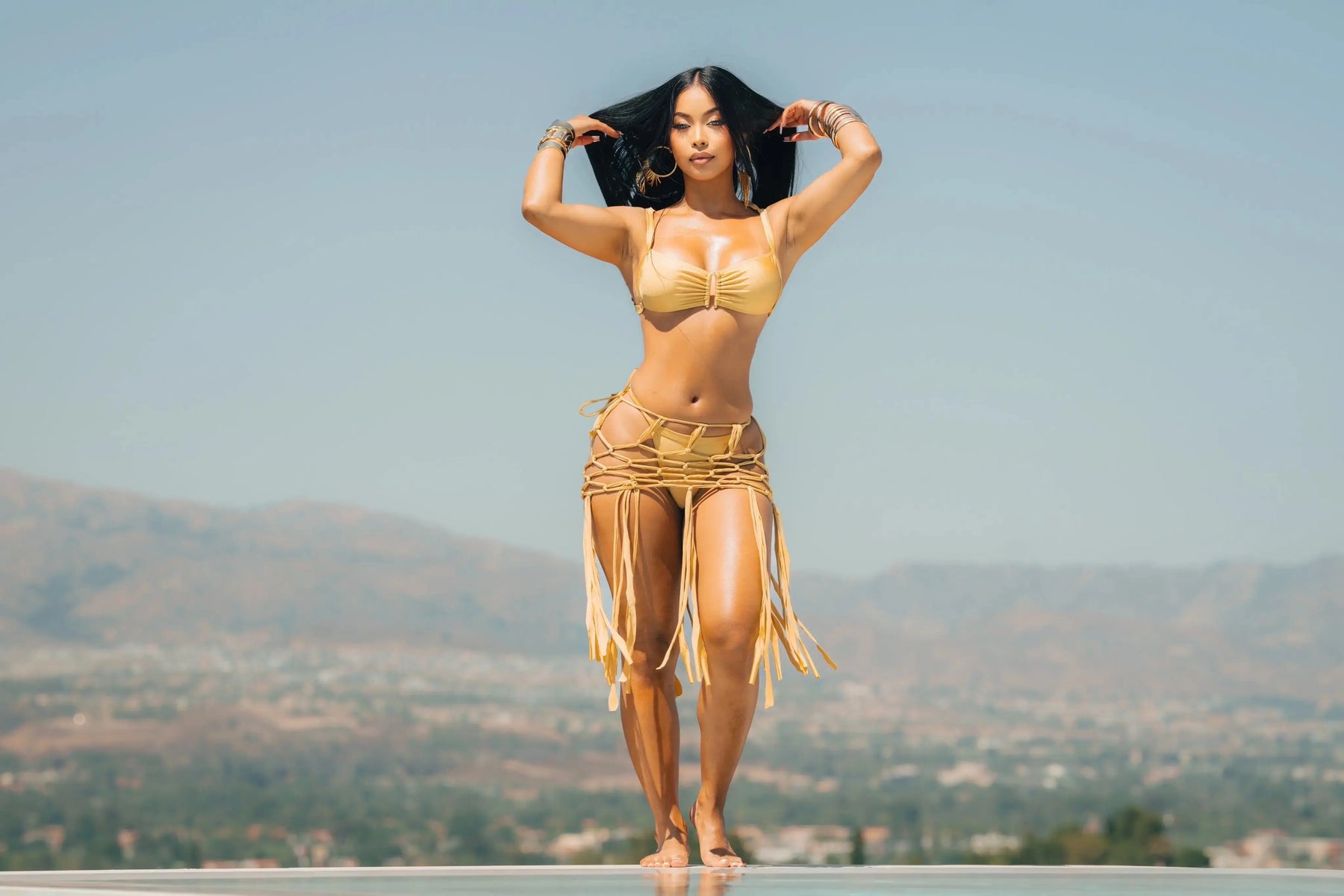 • Drapes your curves in golden waves—perfect for beach days, pool parties, festivals, or photoshoots