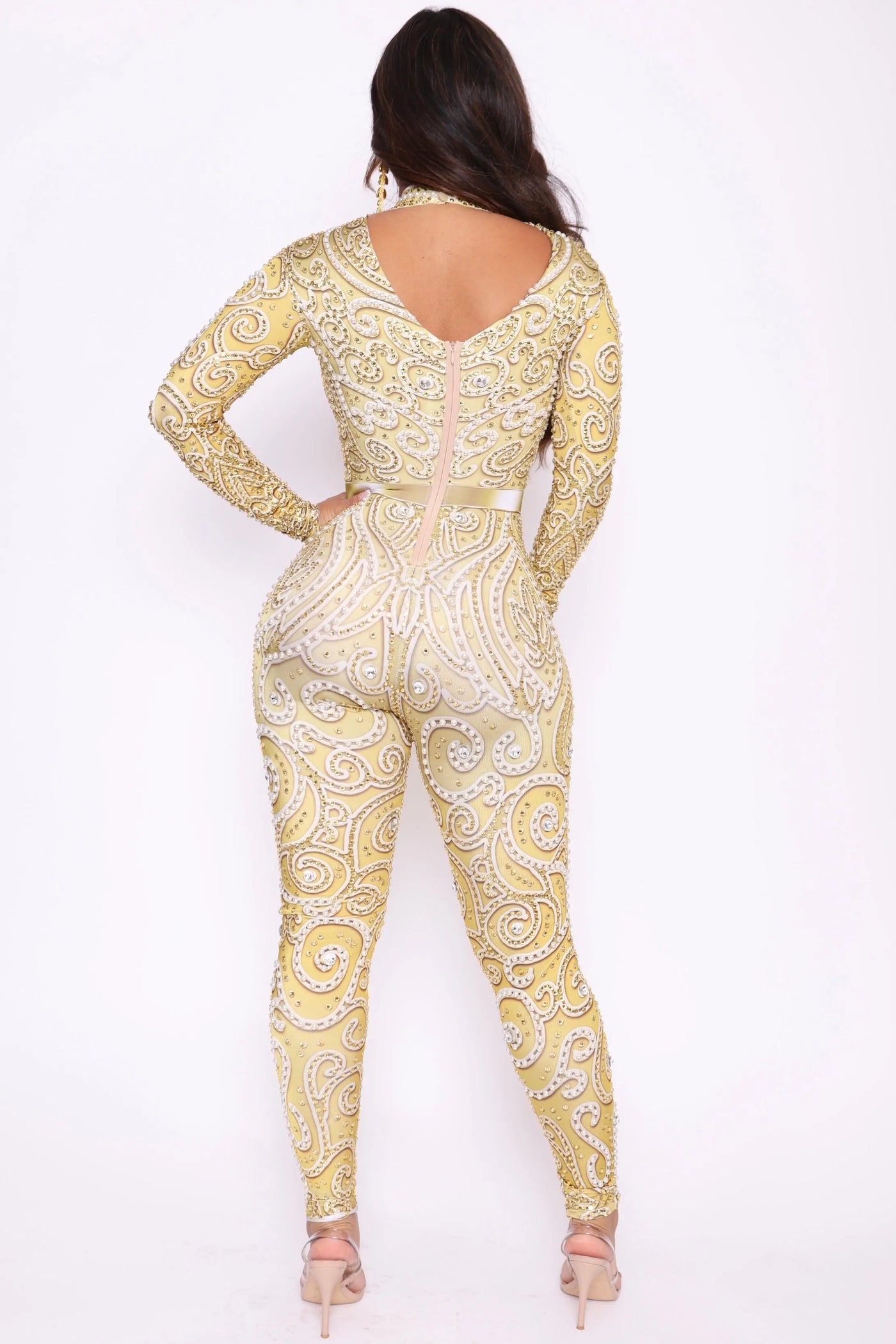 Command attention in the iconic High Society Gold—a masterpiece crafted with airbrushed-style fabric and adorned with silver rhinestones that shimmer with every move. Designed to hug your curves with our thin snapback stretch material, this show-stopping piece promises both comfort and allure. The plunging neckline and bold silhouette ensure you’ll shine brighter than ever, no matter the occasion.