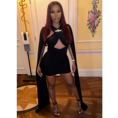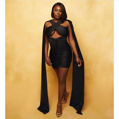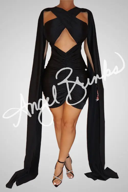 Our Jalapeno (Black) dress is a fiery number that will leave you feeling confident and sexy! The long, draped sleeves add a touch of mystery and the fitted chest and skirt embrace your curves perfectly. Made with black lycra, this garment offers a comfortable stretch while showing off your figure. Don't forget to include your measurements for the perfect fit. This dress also features a zipper in the back for added convenience.