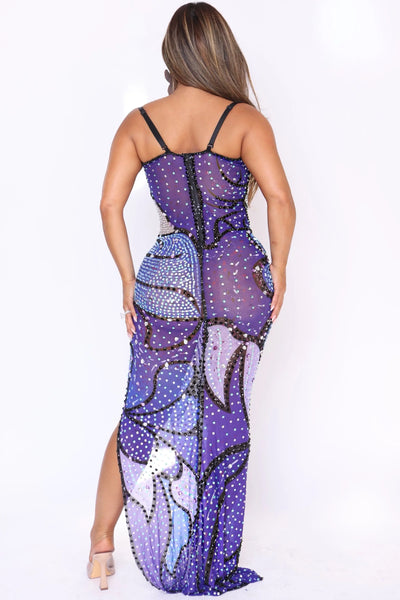 Unleash your inner star with Threat, the rhinestone dress that combines stunning design with comfortable stretch. The vibrant printed mesh and professional-grade rhinestone accents will make any event a showstopper while the true-to-size fit and adjustable straps ensure maximum comfort. Don't miss your chance to shine!