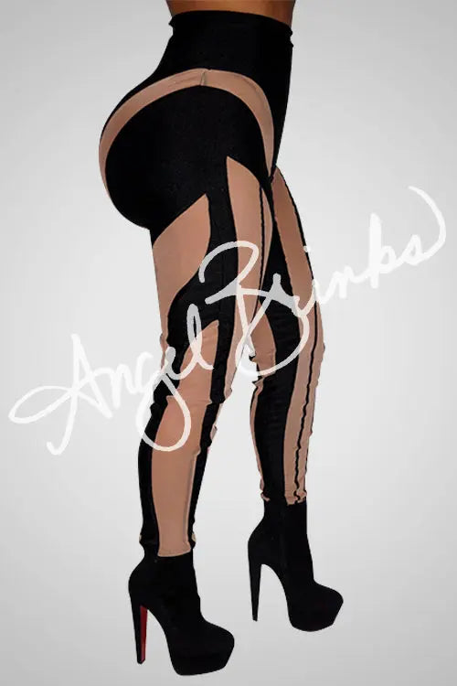 - Black lycra and nude mesh